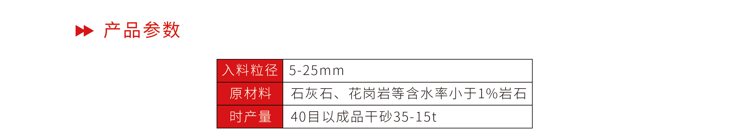 原材料 | 石灰石、花崗巖等含水率小于1%巖石 |