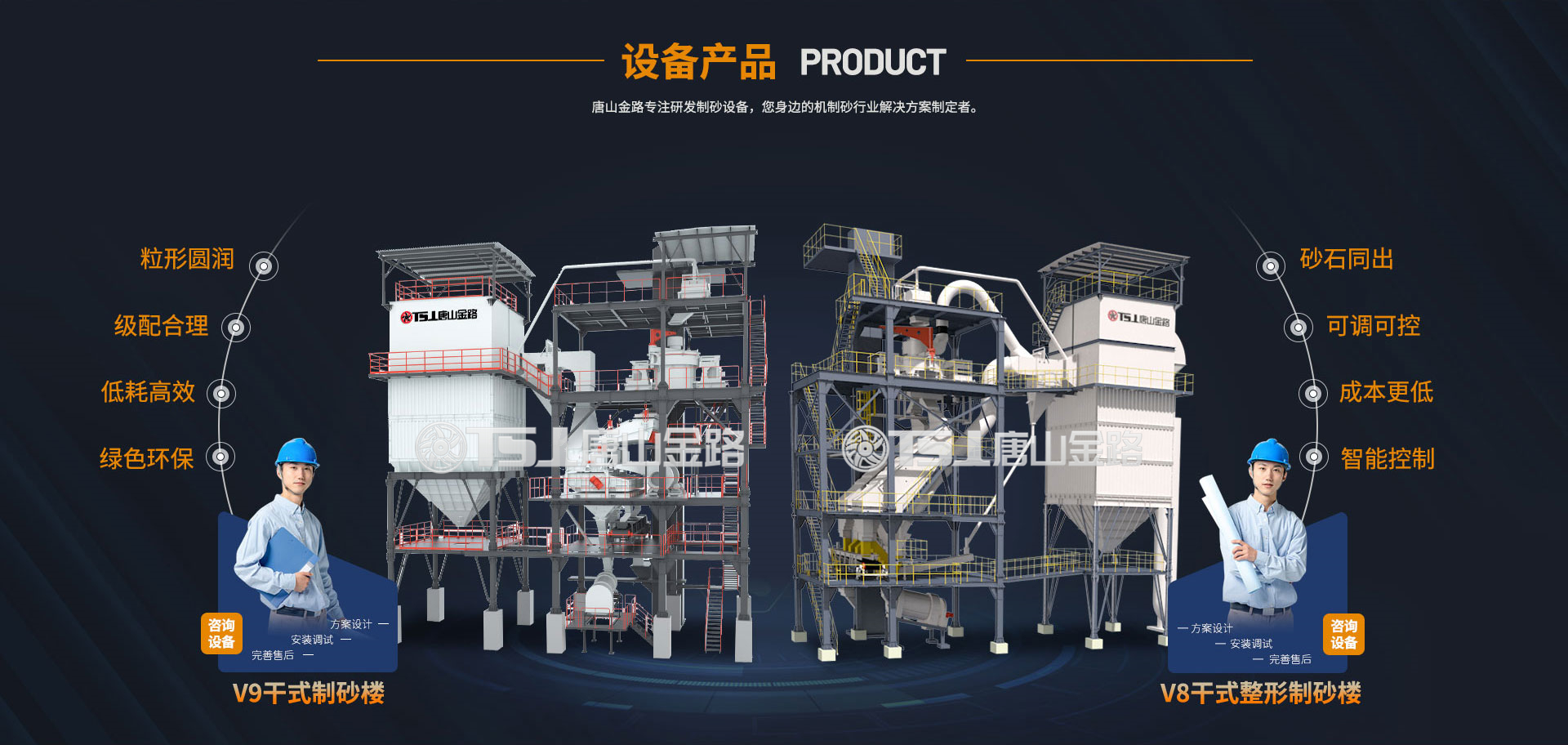 唐山金路作為一家集研發(fā)、生產、銷售、服務于一體的制砂機械設備企業(yè),一直致力于環(huán)保型破碎制砂設備的研發(fā)與生產,現(xiàn)建有年產100萬噸的機制砂生產實踐基地。公司自主研發(fā)的V8干式整形制砂樓、V9干式制砂樓,具有綠色環(huán)保、能耗低產量高、智能控制等特點,產出的機制砂級配合理、粒形圓潤,是制砂生產企業(yè)的理想產品。